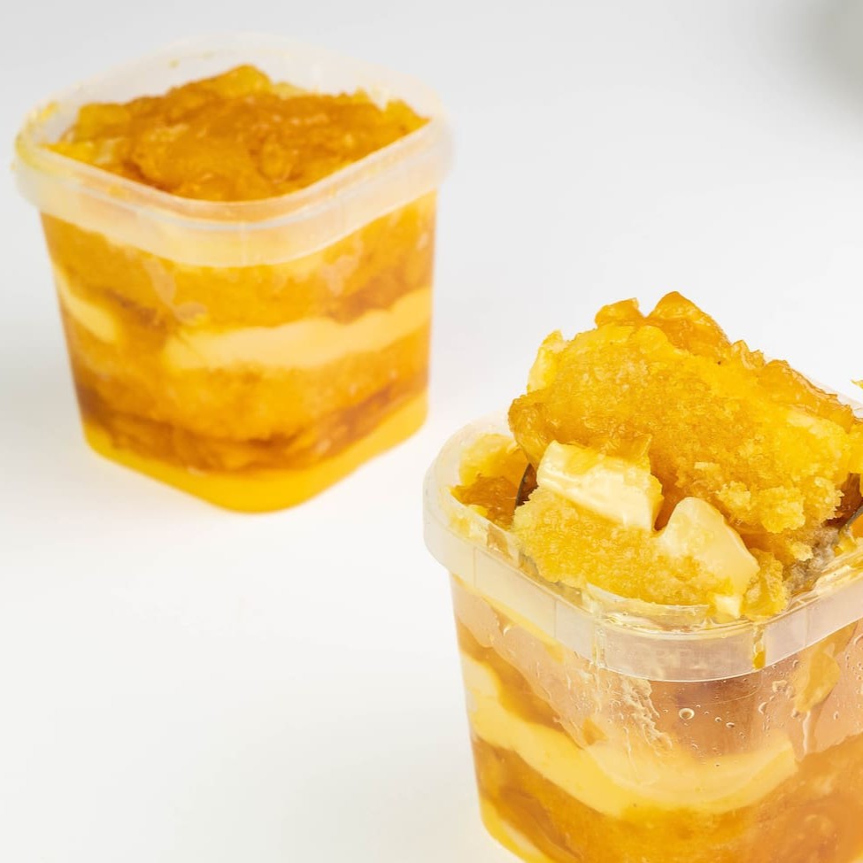 Bolo no pote com massa amanteigada e molhadinha, recheada creme branco, uma deliciosa geleia de abacaxi artesanal.