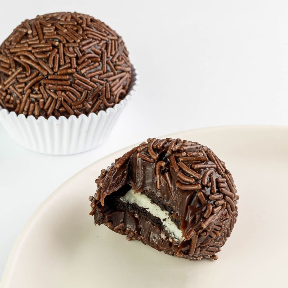 Brownie super chocolatudo e macio, recheado com o nosso delicioso brigadeiro de chocolate belga.