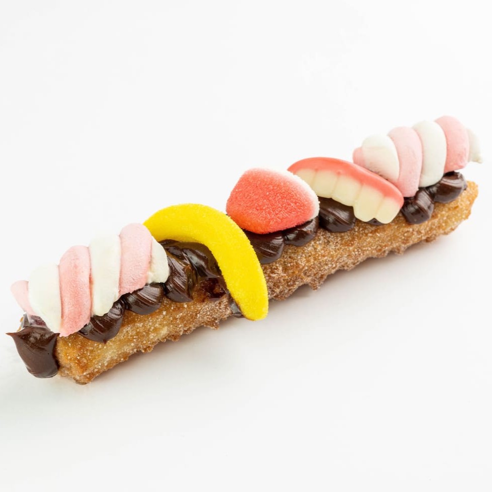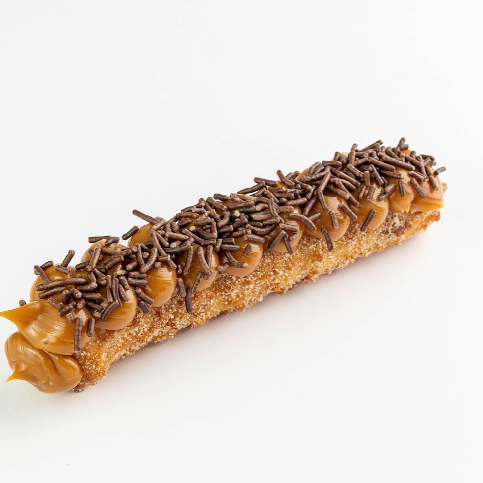 Churros super crocantes por fora e macios por dentro, com um irresistível recheio de Doce de Leite da Fazenda, finalizado com granulado. Os churros são recheados por dentro e por cima, finalizados com um toque especial de açúcar com canela.
