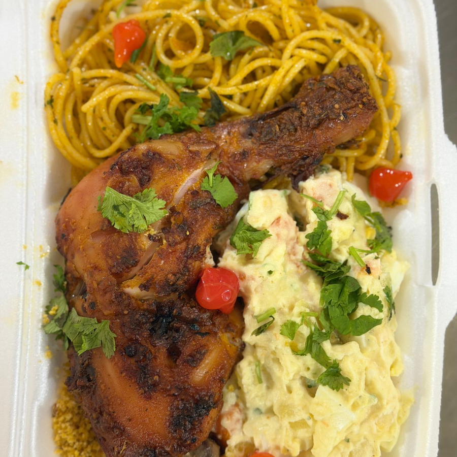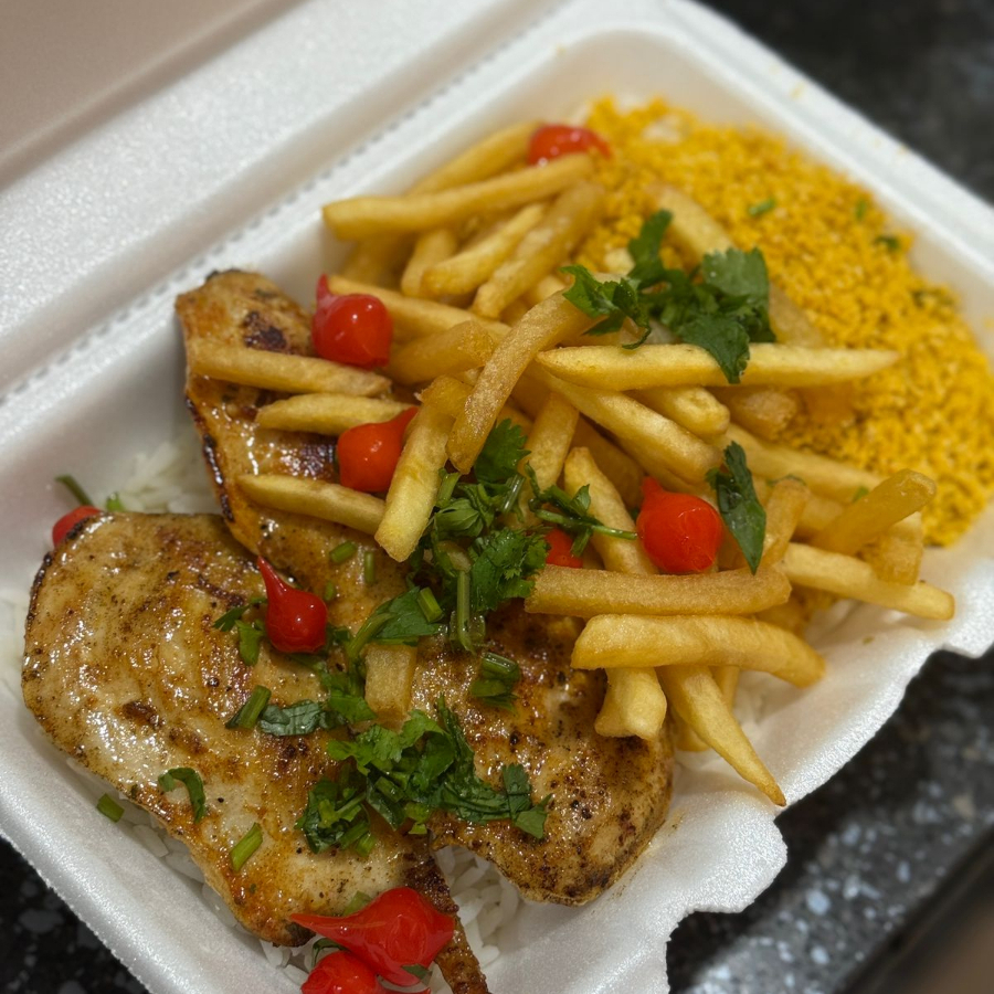 File De Frango Grelhado Com Fritas E Macarrao (seve Muito Bem 1 Pessoa)