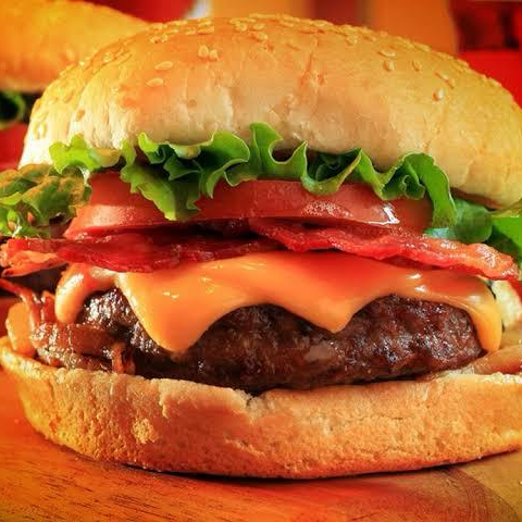 Acompanhamento, hamburguer tradicional de 90GR, ovo, Bacon fatiado, queijo, alface, tomate, cheddar, catupiry, maionese verde.