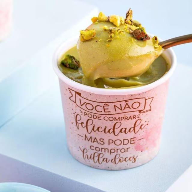 Vencimento para amanhã* Para quem ama pistache trouxemos uma combinação surpreendente. Era para ser um sabor temporário do mês e foi tão aprovado que ficou fixo no cardápio. Nosso brigadeiro de pistache é feito com pasta 100% natural e a geleia de frutas vermelhas feita aqui na Hilla. Por dentro: Massa de bolo branca úmida e fofinha na medida certa com brigadeiro Pistache cremoso e geleia de frutas vermelhas. Produto refrigerado Pote: 180ml obs. 1: a Hilla Doces não altera nenhum produto ou retira/adiciona ingrediente. obs. 2: produto de consumo imediato. obs. 3: produtos com desconto são com vencimento para o mesmo Dia. obs. 4: fotos meramente ilustrativas Contém Glúten E Lactose Alérgicos: Contém Ovo E Derivados De Trigo, Leite E Soja. Pode Conter: Centeio, Cevada, Aveia, Triticale, Amendoim, Amêndoa, Avelã, Castanha De Caju, Castanha Do Pará, Látex Natural,Gergelim E Nozes