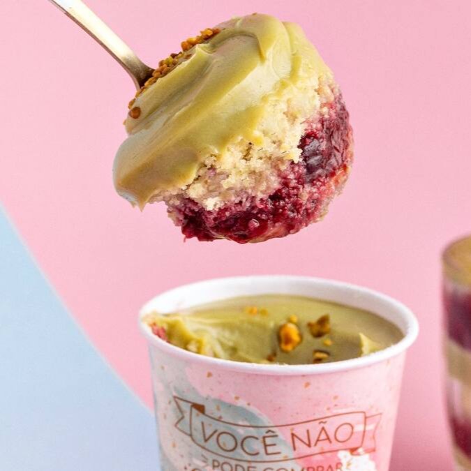 Para quem ama pistache trouxemos uma combinação surpreendente. Era para ser um sabor temporário do mês e foi tão aprovado que ficou fixo no cardápio. Nosso brigadeiro de pistache é feito com pasta 100% natural e a geleia de frutas vermelhas feita aqui na Hilla. Por dentro: Massa de bolo branca úmida e fofinha na medida certa com brigadeiro Pistache cremoso e geleia de frutas vermelhas.