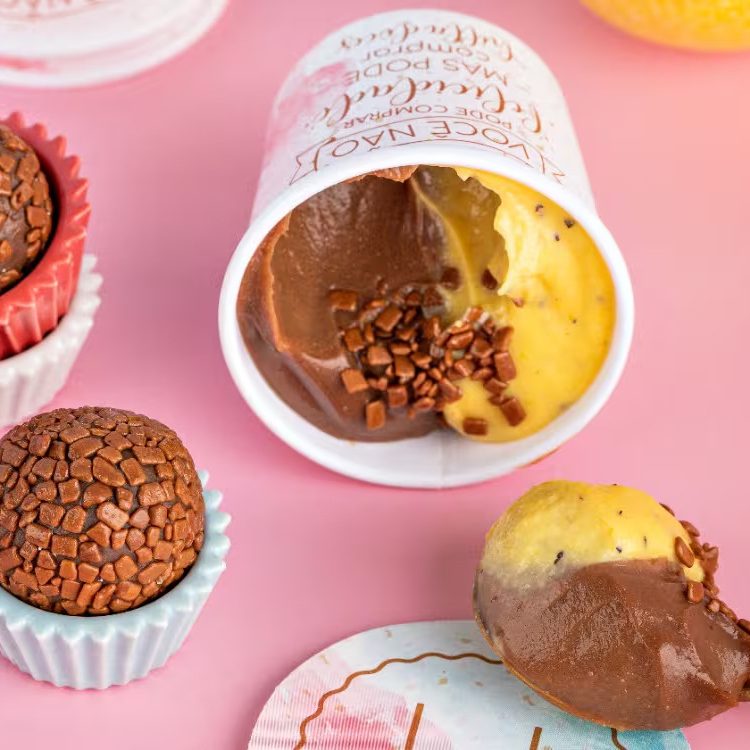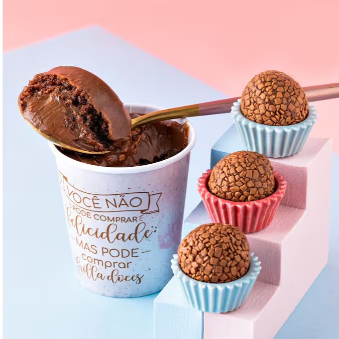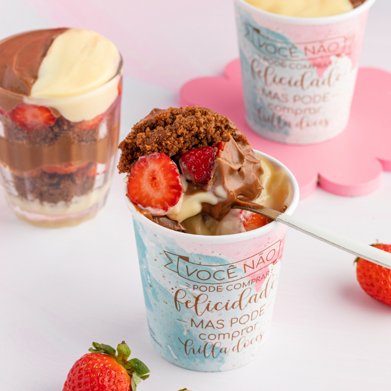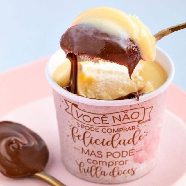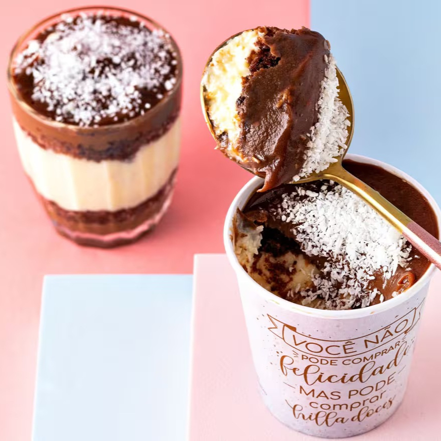 Uma das combinações mais amadas na Hilla virou um potinho para comer de colher. Brigadeiro branco e brigadeiro de chocolate cremoso, juntos no mesmo potinho. O clássico que não tem erro, você vai amar.