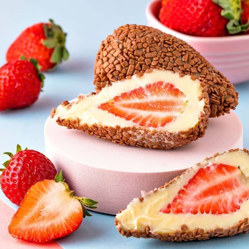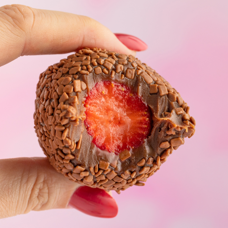 Combinação que não tem erro né? Brigadeiro de chocolate com recheio de morango é Você vai se apaixonar! E pra ficar ainda mais delicioso nossa coxinha de morango é finalizada com confeito ao leite belga. Produto Refrigerado Contém 1 unidade Peso: 60g obs. 1: a Hilla Doces não altera nenhum produto ou retira/adiciona ingrediente. obs. 2: produto de consumo imediato. obs. 3: produto com desconto o vencimento é para o mesmo Dia. obs. 4: fotos meramente ilustrativas Contém Glúten E Lactose Alérgicos: Contém Ovo E Derivados De Trigo, Leite E Soja. Pode Conter: Centeio, Cevada, Aveia, Triticale, Amendoim, Amêndoa, Avelã, Castanha De Caju, Castanha Do Pará, Látex Natural,Gergelim E Nozes