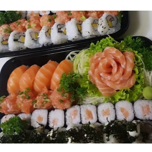 # Pratos Frios # 2temakis A Sua Escolha 10 Deliciosas Fatias De Sashimis 6 Deliciosos Hot Holls Crocantes 6 Deliciosos Jhou salmão 6 Deliciosos Niguiris salmão 6 Deliciosos Uramakis salmão 6 Deliciosos Hossomakis de salmão 4 Deliciosas Entradas - Carpaccio salmão , Cevithe salmão e tilapia, Sonomono, # Pratos Quentes # 1 porção de Lula á dorê 8 Deliciosos Camarões empanado 2 Deliciosos Pedaços De Salmão Grelhados 2 Deliciosas Porções De Shimejis 6 Deliciosos Guioza Fritas 6 Deliciosos Harumakis 2 Deliciosos Pratos Quentes 1 Frango xadrez , 1 Yakissoba Tradicional [Não Realizarmos Alterações No Prato]