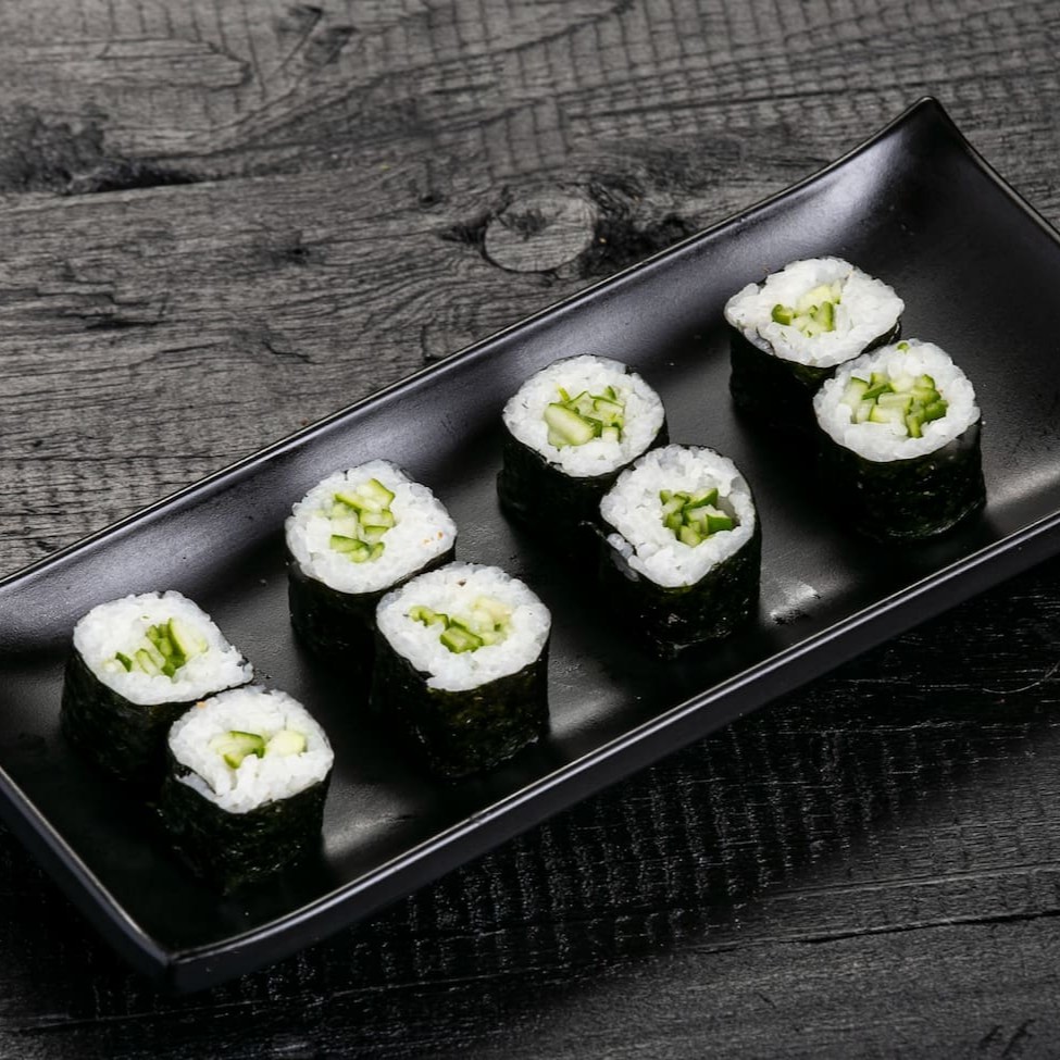 Alga marinha enrolado no aroz e rechio de pepino. Atenção! Sem alteração.... Deixe sua avaliaçao no app sobre este pedido, sua 5 estrela vai ajudar bastante;)