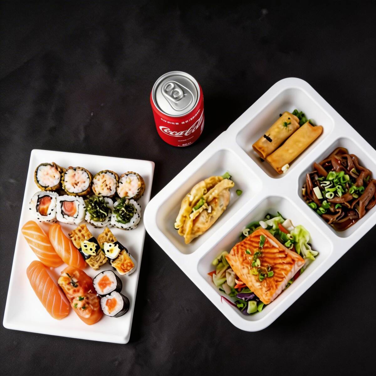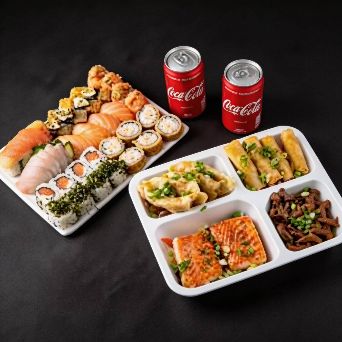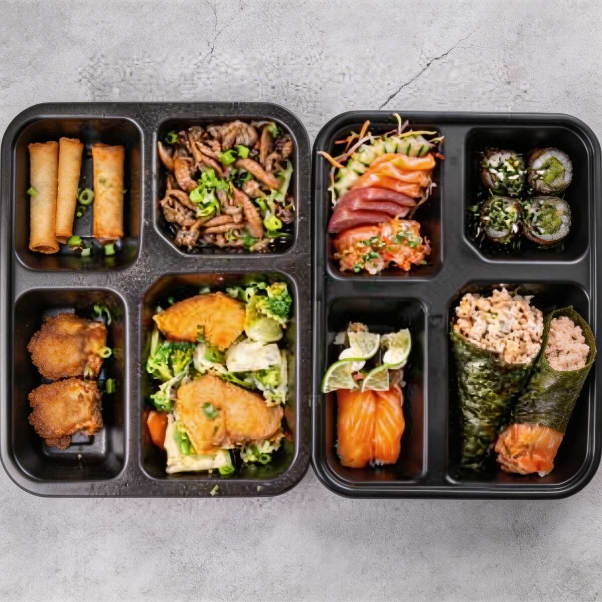 6 Sashimi 2 Jhous 2 niguiri skin 2 Niguiri salmão 4 Hot Hol 2 Temaki 100g a escolha do cliente 2 Guioza 2 Harumaki De Queijo 2 Salmões Grelhados com legumes 1 Shimeji 100g