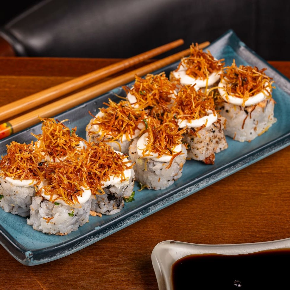 5 uramaki com Doritos, 5 uramaki com couve crispy, 5 uramaki com batata crispy, 5 uramaki com cream cheese e cebolinha