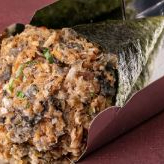 Pele de salmão frito,arroz, nori, creme cheese e cebolinha