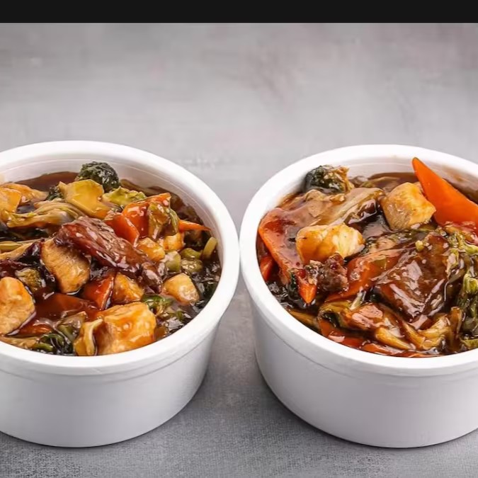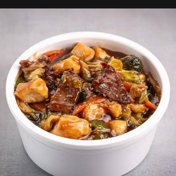 Nosso delicioso yakissoba com carne, frango e legumes ao molho de soja. Aproveite!