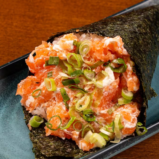 Salmão grelhado, shari, nori, cream cheese e cebolinha
