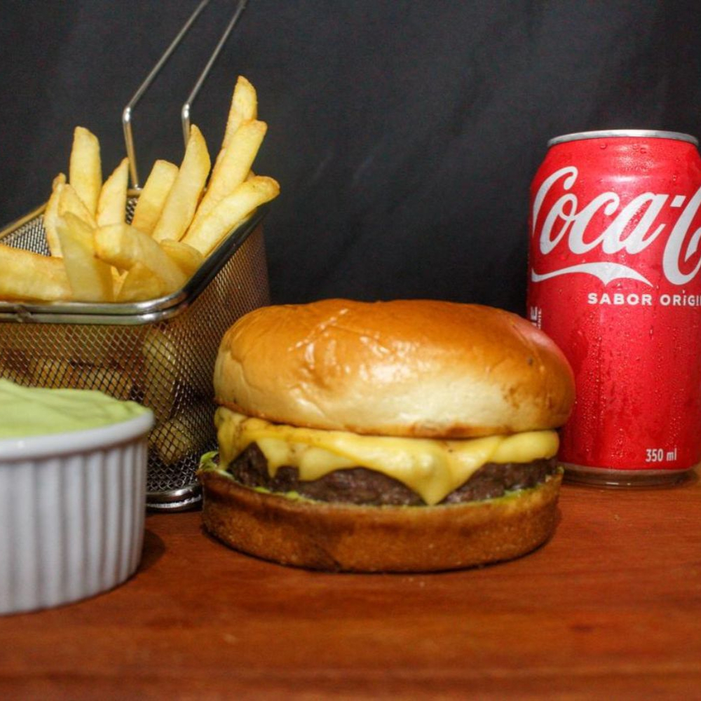 Pão brioche, blend de 160g, queijo e maionese + coca-cola 350ml