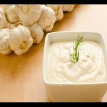 Pasta de molho de alho árabe da casa, sabor irresistível, agora em uma porção maior só para você. Prove agora mesmo