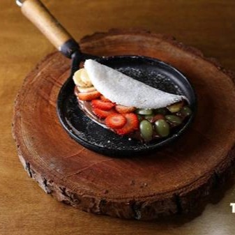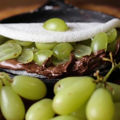 Maravilhosa massa artesanal recheada com muita Nutella, bananas selecionadas, uvas selecionadas e morangos selecionados.