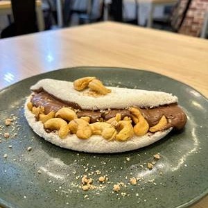 Maravilhosa massa artesanal recheada com muita Nutella acompanhada de castanhas de caju selecionadas
