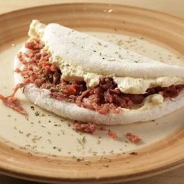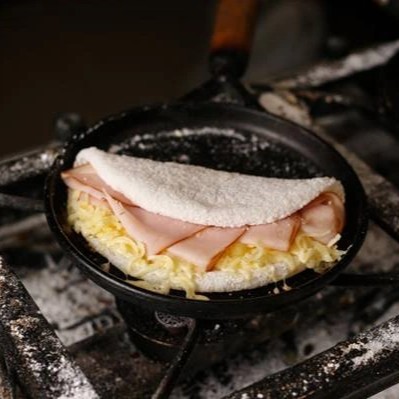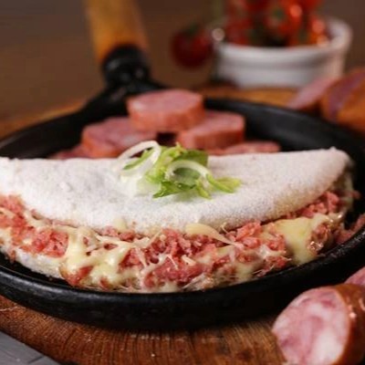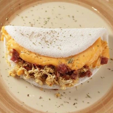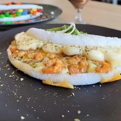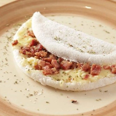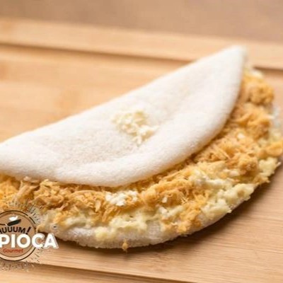 Tapioca com massa artesanal recheada com muito queijo mussarela, catupiry original e camaroes selecionados.