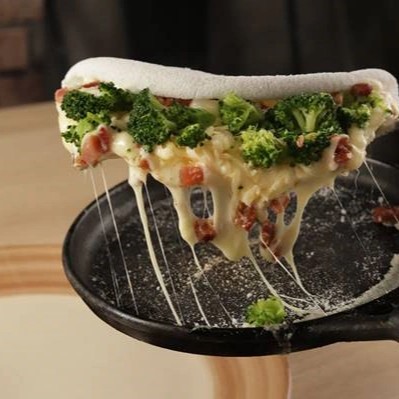 Maravilhosa massa artesanal muito recheada com Brocolis fresquinho de primeira qualidade cozido e temperado com sal, mussarela derretido de primeira qualidade , catupiry original e bacons crocantes em cubinhos.
