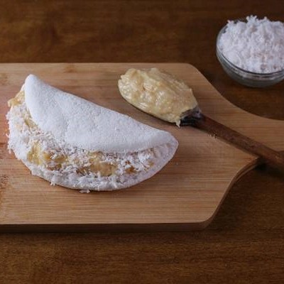 Massa deliciosa caseira recheada com creme de Ninho acompanhado de coco fresco ralado