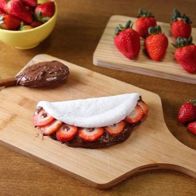 Maravilhosa massa artesanal muito recheada com morangos selecionados fatiados e muita nutella de verdade.