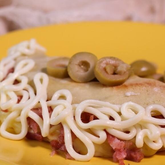 Maravilhosa massa artesanal , muito recheada com presunto , mussarela , ovos mexidos e um toque de orégano