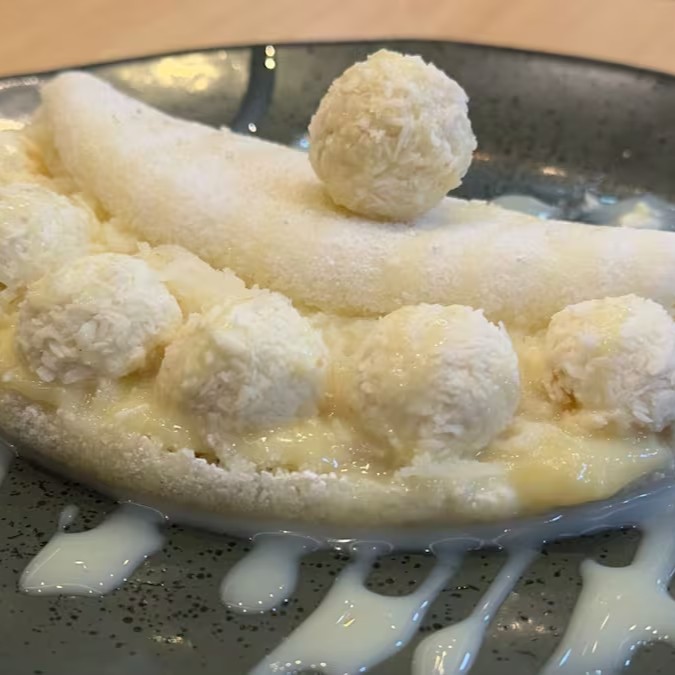 Delicie-se com a nossa 'Tapioca Ferrero Rocher', uma especialidade da categoria 'Tapiocas Premium (Muito recheada)'. Esta obra-prima culinária apresenta uma massa artesanal irresistível, generosamente recheada com o renomado Ferrero Rocher. Acrescentamos o doce e cremoso leite em pó 'Ninho' que complementa perfeitamente o sabor, e para finalizar, uma camada luxuosa de 'Nutella' que o levará a uma experiência gastronômica inesquecível. Um prato que é um verdadeiro deleite para os amantes de sabores doces e ricos!