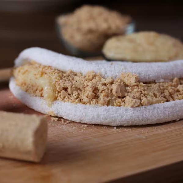 Maravilhosa massa artesanal recheada com creme de leite Ninho e paçoquita .