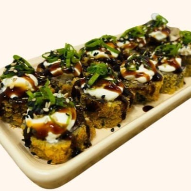 Hot roll frito em óleo de soja, com massa a base de farinha panko que fica sequinha e crocante, recheado com salmão grelhado, cream chease e cebolinha.