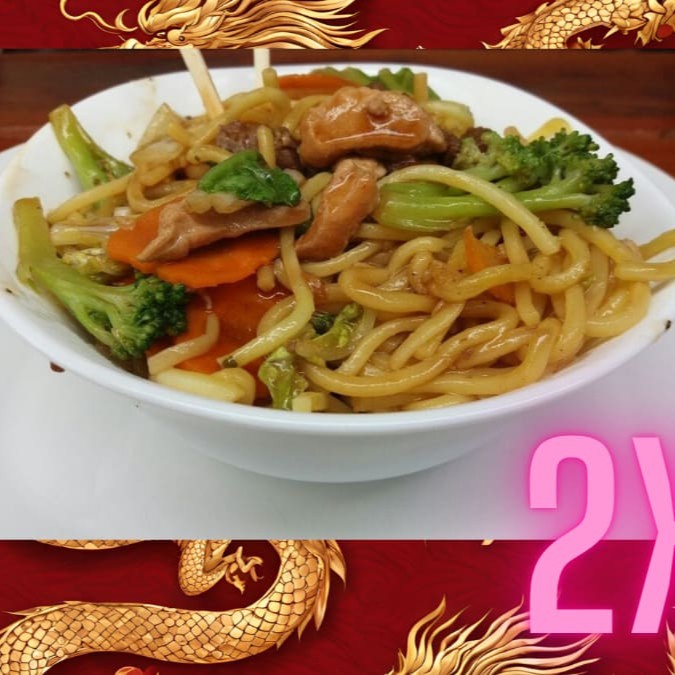 (2 Yakisobas Individuais De 450g)Delicioso macarrão oriental frito em óleo de gergelim acompanhado de cebola, cenoura, brócolis, repolho, carne bovina e frango em tiras e molho especial a base de shoyu . Tamanho Pequeno 450 kg-2 Yakissobas-