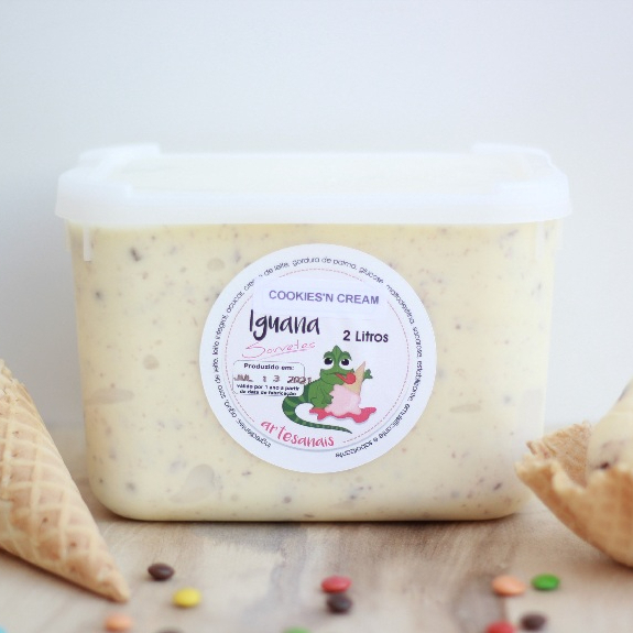 Delicioso sorvete artesanal, produzido com insumos de altíssima qualidade, massa sabor leitinho mesclado com creme de avelã, wafer e castanha de caju