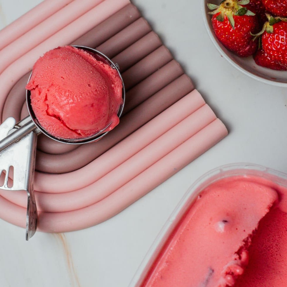 Delicioso sorvete artesanal, produzido com leite de soja,sabor morango