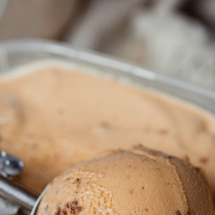 Delicioso sorvete artesanal, produzido com leite de soja, sabor café