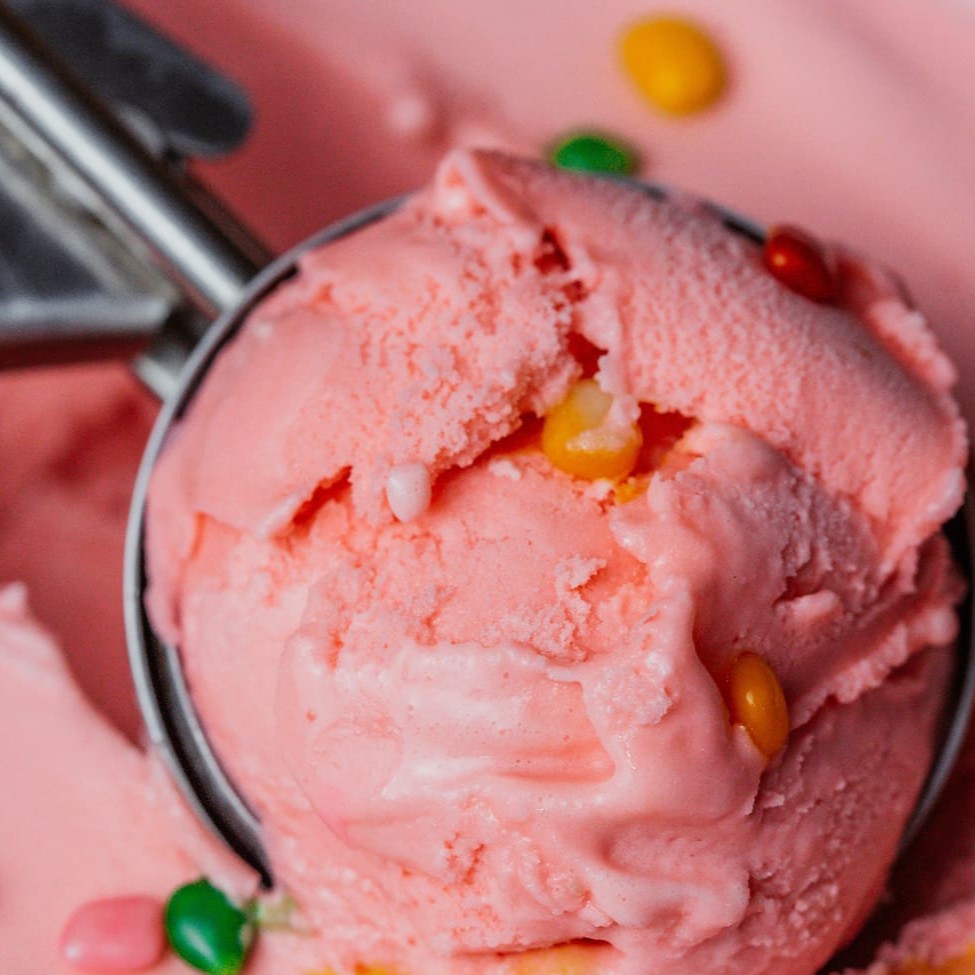 Delicioso sorvete artesanal, produzido com leite de soja,sabor morango