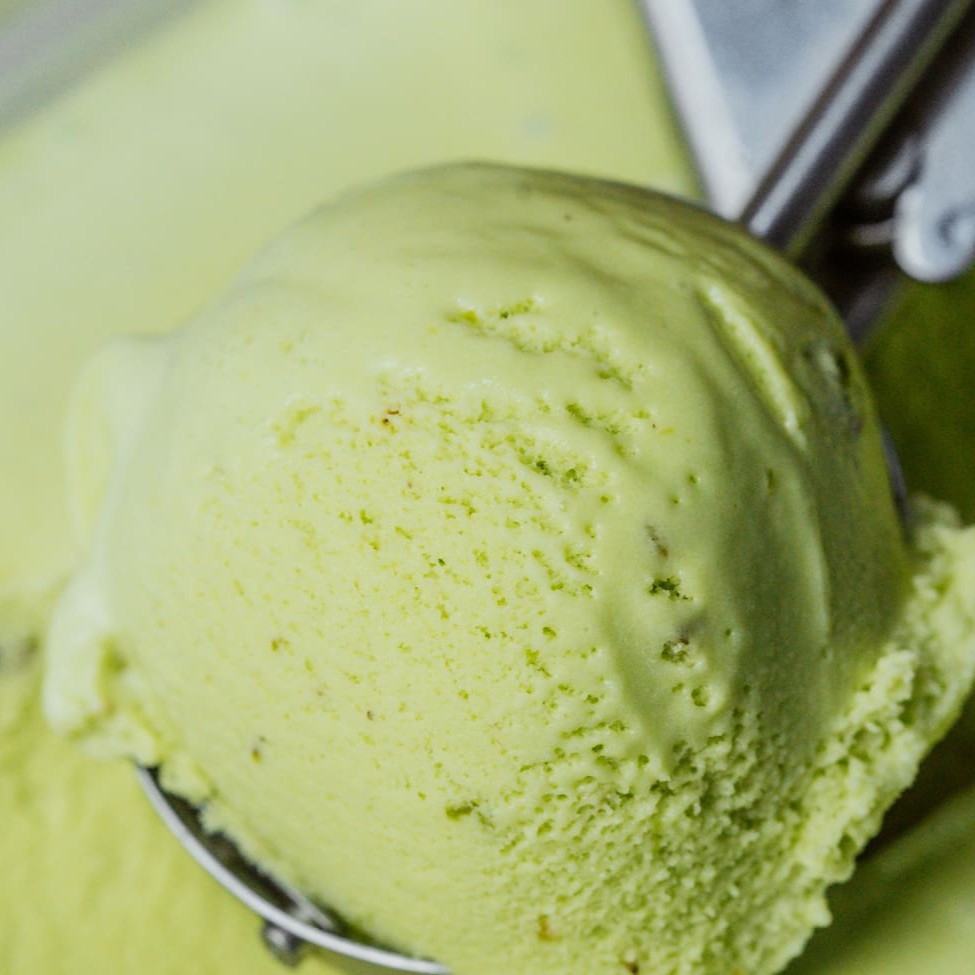 Delicioso sorvete artesanal, produzido com leite de soja, sabor pistache