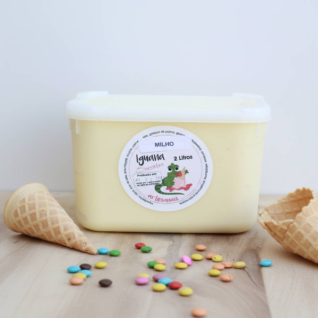 Delicioso sorvete artesanal, produzido com leite de soja sabor milho