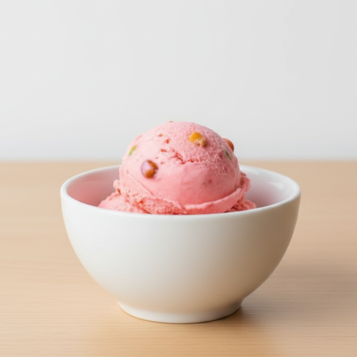 Delicioso sorvete artesanal, produzido com leite de soja, sabor chiclete