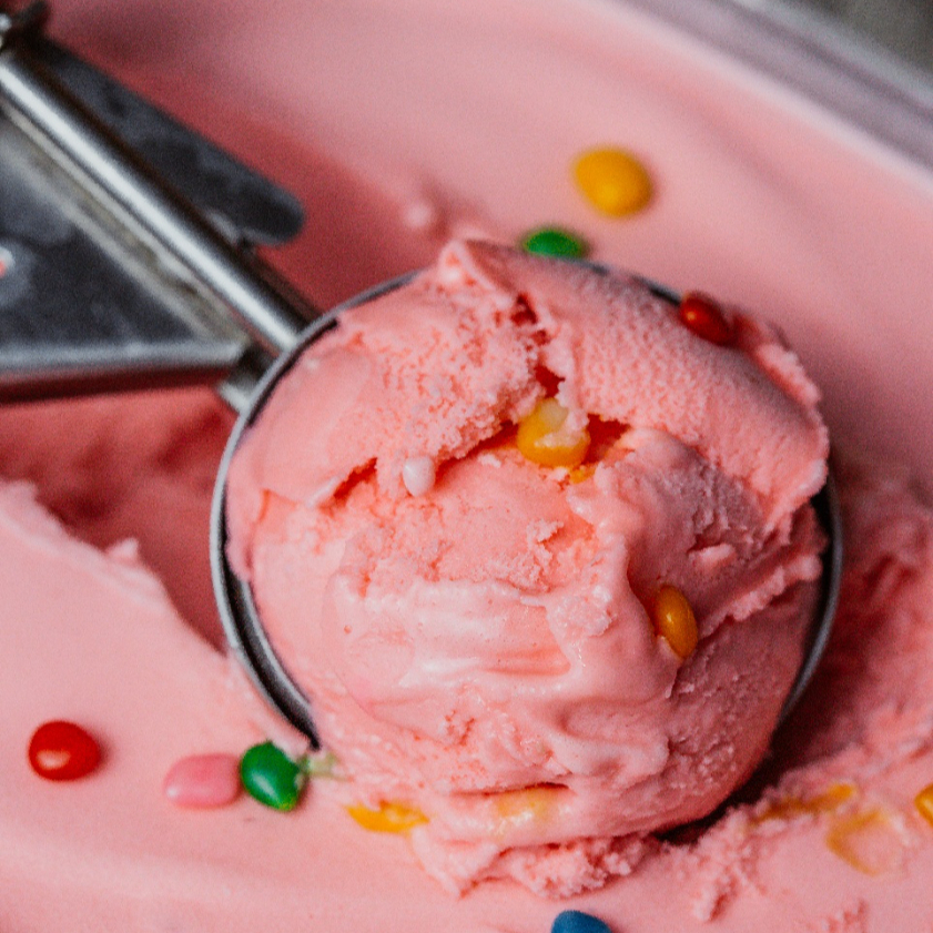 Delicioso sorvete artesanal, produzido com leite de soja,sabor morango