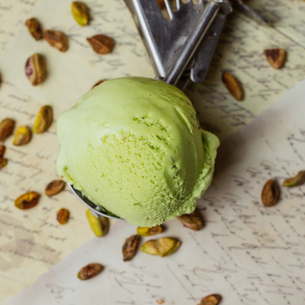 Delicioso sorvete artesanal, produzido com insumos de altíssima qualidade sabor pistache com grãos de pistache