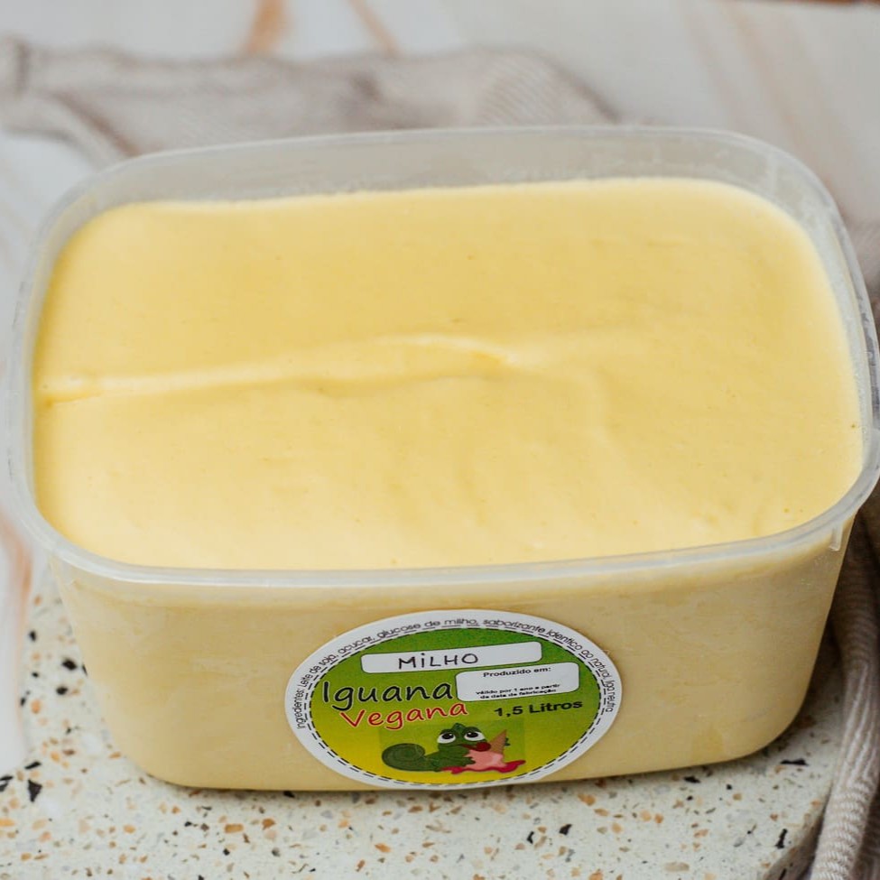 Delicioso sorvete artesanal, produzido com leite de soja sabor milho