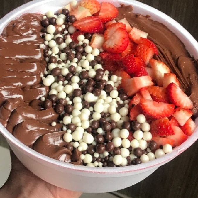 Marmita De Açai e Cupuaçu Com 750 Ml 6 Acompanhamentos E 1 Fruta Grátis, Caso Queira Metade Açai E Metade Cupuaçu Colocar Na Observação