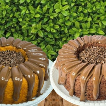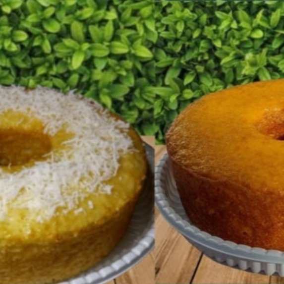 2 Bolos Caseirinhos Premium: Bolo de Cenoura Artesanal, super macio e saboroso, feito com cenouras frescas + Bolo de Coco Molhadinho, extremamente macio e molhadinho finalizado com coco ralado.