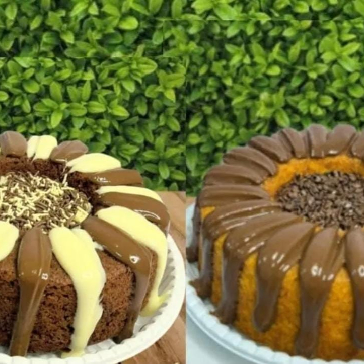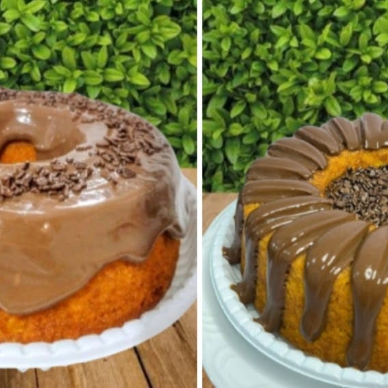 Bolo Coberto De Cenoura Com Brigadeiro Belga+vulcão Cremoso De Cenoura Com Brigadeiro Belga ( Serve Até 18 Pessoas)