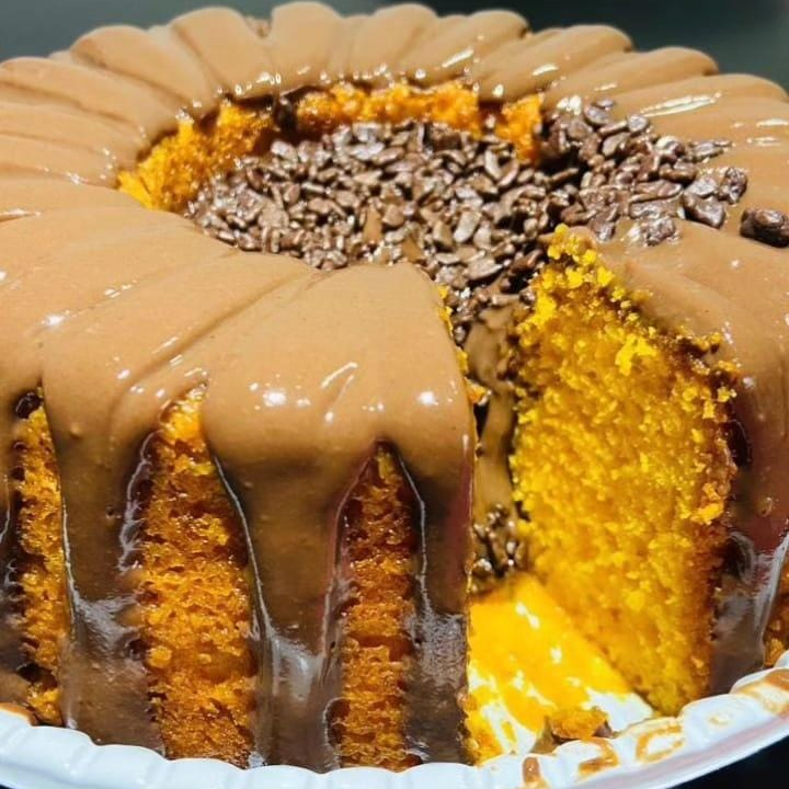 Descubra o verdadeiro sabor do Melhor Bolo de Cenoura da sua vida! Preparado com cenouras frescas e selecionadas. Cuidadosamente raladas à mão que garantem uma textura macia e úmida que se desfaz na boca. No centro deste bolo, você encontrará uma surpresa irresistível! O recheio luxuoso e cremoso de brigadeiro gourmet Belga, que se espalha ao cortar a primeira fatia. Excepcionalmente saboroso! Uma explosão de sabores que fará seu paladar entrar em erupção de felicidade. Tamanho 19 cm - Aproximadamente 900 Gramas De Puro Sabor.