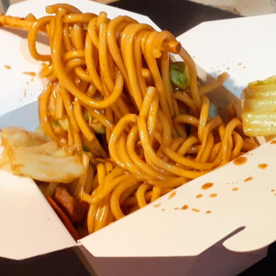 Macarrão oriental com carne frango abase de shoyu e nosso tempero exclusivo.