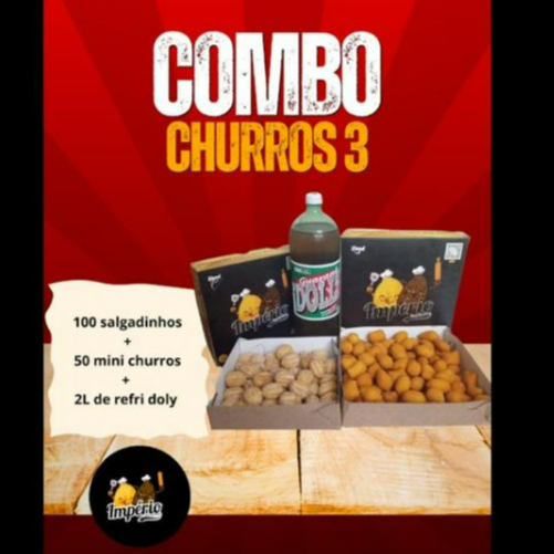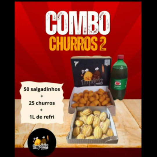 100 unidades mini salgados+ 50 unidades churros + 1 refri dolly ou 2l guaraná