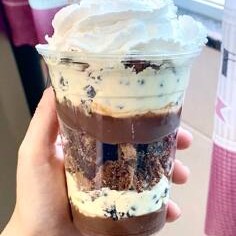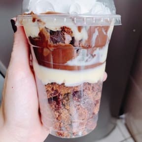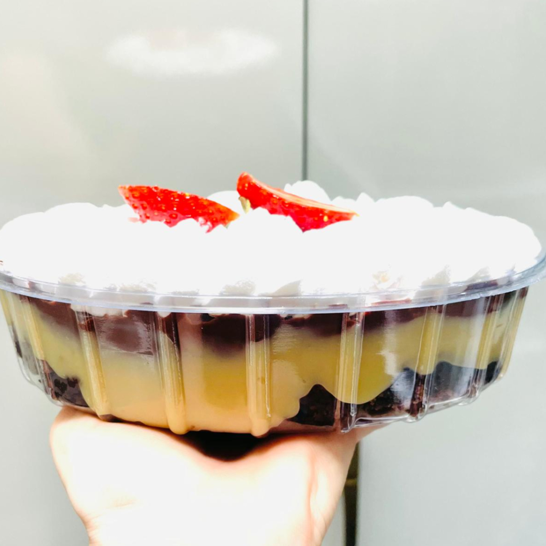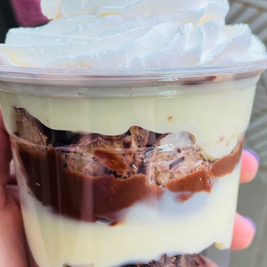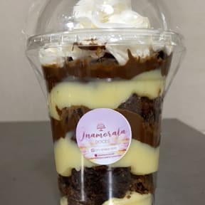 Composto pelo nosso brownie super molhadinho, o recheio de sua preferência, e os complementos que vc marcar(só vai uma camada de cada complemento).Para finalizar usamos chantilly