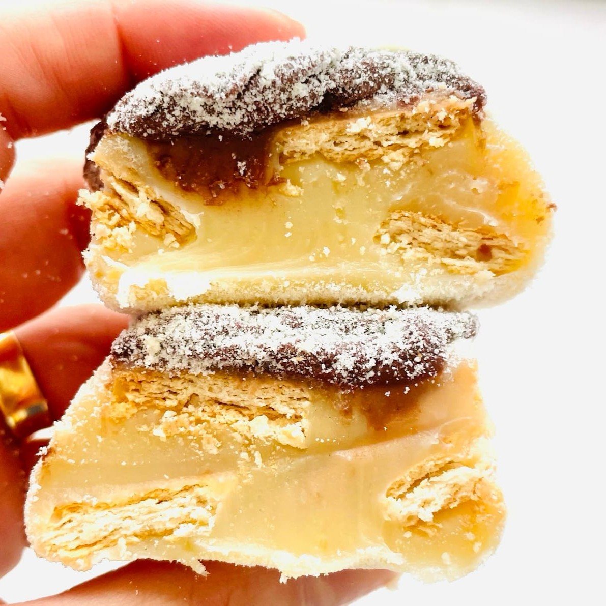 Brigadeiro de Ninho, com biscoito maisena e empanada no leite Ninho. Tamanho 5x5