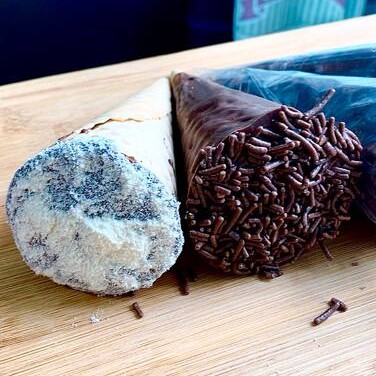 Casquinha de sorvete crocante com brigadeiro 50% cacau