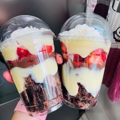Aquele copo da felicidade que tanto vocês pediram, com muito brigadeiro de Ninho e morango, finalizado com chantilly. Esse copo não leva brownie.
