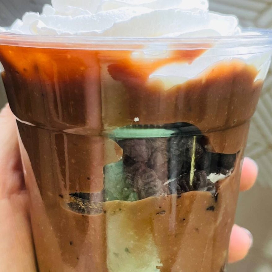 Brownie, brigadeiro de chocolate 50% cacau, biscoito Oreo e chantininho.